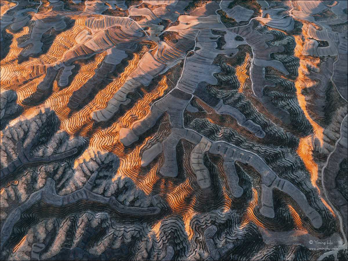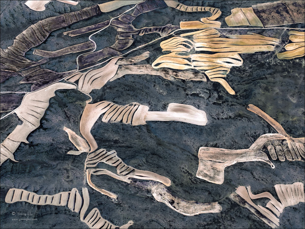人工耕作顺应山势延伸,与自然地貌交织在一起,呈现出尺度宏大的地表纹理